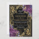 Convite Casamento Dourado do Ornamentado Floral Roxo Escur