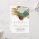 Lava-d-água de abstrato de tipografia moderna em ouro, bronze e convites de casamento verdes em folha com texto dourado. Inteligente e elegante, seria adorável para um casamento no inverno. Personalize com suas próprias informações.