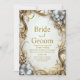 Torne o seu casamento inesquecível com este luxuoso convite de casamento, com ouro intrincado e ornamentos florais brancos a formar um centro de marfim primitivo. O opulente design expele sofisticação, misturando flores delicadas com sotaques ouros que graciosamente adornam as fronteiras, deixando a área central livre para texto personalizado. Perfeito para casais que buscam uma estética refinada e elegante para seu dia especial, esse convite dá o tom para uma celebração de eterno.
