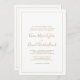 Este convite de casamento tradicional de ouro minimalista é perfeito para um casamento simples. A design romântica moderna apresenta ouro clássico e tipografia branca emparelhada com uma caligrafia rústica, mas elegante, com estilo voltado para a mão. Personalizável em qualquer cor. Mantenha o design simples e elegante, como está, ou personalize-o adicionando seus próprios gráficos e trabalhos de arte.
