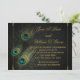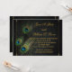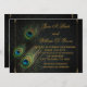 Penas de pavão lindas com esmeralda verde, azul-pavão e convites para casamentos de ouro. Este elegante convite de casamento de pavão preto e ouro é facilmente personalizado para o seu evento. Você pode excluir a imagem de fundo do verso se quiser escolher sua própria cor de fundo, como preto.