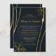 Este luxuoso casamento salva o cartão de data apresenta um esquema de cores preto e ouro impressionante com um tema floral elegante. O cartão é adornado com designs florais de ouro intrincados e sotaques de ouro a brilhar num fundo preto rico. As fontes de serif e script de na moda adicionam um toque de sofisticação, definindo perfeitamente o tom de um casamento elegante e memorável.