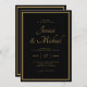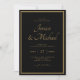 Convite de casamento preto e dourado com elegante tipografia minimalista. Simples de personalizar com detalhes do seu casamento para seus convidados.