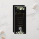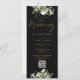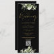 Um convite de casamento floral verde que inclui uma elegante tipografia de escrita de caligrafia em ouro e o seu website de casamento Código QR num fundo negro. Projetado por Thisnotme©
