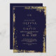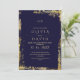 Convite Casamento Dourado e Real Minimalista Azul Moderno