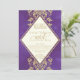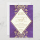 Royal Purple e gold damask vintage glam convite para casamento, com ouro damask e elegante centro geométrico de marfim. Inspirado por Vintage glam, design barroco florescente, este belo convite para o casamento roxo e dourado está certo na tendência com os conjuntos de convites para o casamento mais elegantes de hoje, com seu texto ousado de guião capricho e belo estilo formal.
