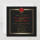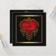 Rich red satin coração com ornamentado de ouro, trim elegante, preto e ouro, convite para casamento.