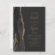 A borda esquerda deste elegante convite de casamento moderno apresenta uma coloração aquosa preta, borda agitada, aparada com falso brilho dourado. O texto personalizável combina manuscrito dourado e fontes sans serif em um fundo preto de slate. O verso apresenta um design de agate preto e dourado correspondente.