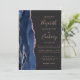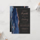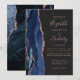 A borda esquerda deste elegante convite de casamento moderno apresenta um marinho azul de aquarela agate bordado com falso brilho rosa de ouro. O texto personalizável combina um script de escrita manual rosa-rosa com fontes em copperplate e itálico em um fundo preto de ardósia. O verso apresenta um design marinho de agate azul e rosa dourado correspondente.