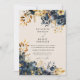 Convite Casamento Dourado Floral Azul da Meia-Noite de Águ