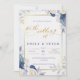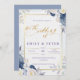 Convite Casamento Dourado Floral Azul Elegante Dusty