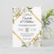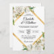 Convite Casamento Dourado Floral Branco Antiquado, Aquarel