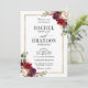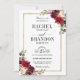 Marinho vermelho-escuro com cruz de cor-de-água, modelo de convite floral cor-de-rosa para casamento, com quadro Dourado e inscrição ouro com folhagem botânica verde e folhas de eucalipto em fundo branco. Esta design fácil de personalizar pode combinar facilmente com as cores do casamento, estilos e temas e é uma escolha perfeita para o meio do outono ou casamentos no inverno. Você pode encontrar mais designs correspondentes na minha loja ou entrar em contato comigo se precisar de ajuda na personalização do design.
