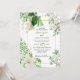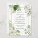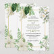 Um belo design de verde rústico com floral branco e uma elegante armação de ouro. Um convite de casamento botânico moderno com flores brancas, folhas verdes e sotaques de ouro ideais para qualquer casamento temático. Também estão disponíveis itens de papelaria de casamento e outros formatos de convite de casamento.