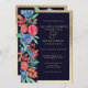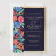 Convite Casamento Dourado Floral de Coral Azul Elegante
