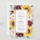 Convite Casamento Dourado Floral de Sunflower Burgundy