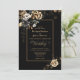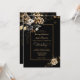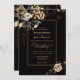 Torne seu dia especial ainda mais memorável com este elegante convite de casamento floral preto e ouro! Este convite apresenta um arranjo de rosas pretas, douradas, creme e bolchedos de ouro suave no fundo atrás das flores adicionando um toque de branco e criando o pano de fundo perfeito para seus detalhes de casamento. Fechado em uma simples borda dourada, o texto personalizável permite adicionar suas próprias informações ao convite. A combinação eterno de preto escuro e ouro luxuoso faz desse convite uma escolha perfeita para qualquer tipo de casamento formal, enquanto o intrincado design floral adiciona um toque de feminilidade e elegância.