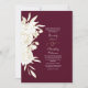 Este convite de casamento de branco e ouro é elegante e clássico. É tão sofisticado com o corajoso floral na frente. Sua foto favorita se agarra pelas costas junto com um código QR que facilita para os convidados a obtenção dos detalhes do seu dia especial