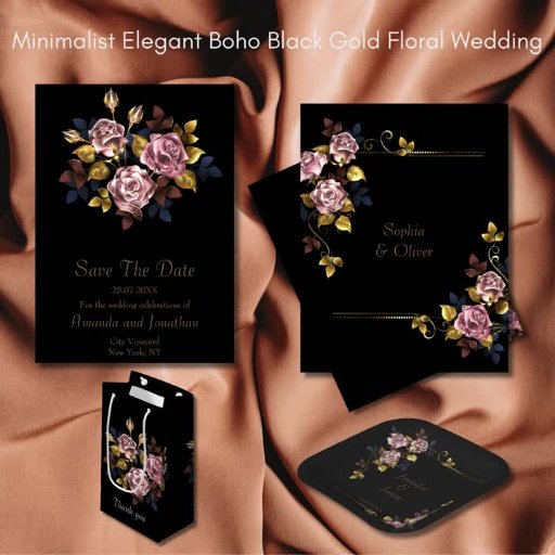 Minimalist Elegant Boho Black Gold Floral WeddingCriado por Reviva Sisters