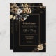Convite Casamento Dourado Floral Negro Elegante Após Festa