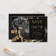 Convite Casamento Dourado Floral Negro Escuro Salve a Data