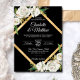 Convite Casamento Dourado Floral Preto-Branco com Aquarela
