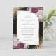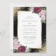 Um convite de casamento floral, preto, burgundy e branco, cor-de-rosa elegante, com flores rosas e roxas, que delineiam os detalhes do casamento, dentro, um quadro de ouro enfeitado com o confete dourado. Itens correspondentes disponíveis.