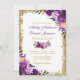 Cartão de Convite para Casamento Dourado Floral Ultra Violet Púrpura a Aquarela - Roteiro Roxo - Parte Traseira Roxo