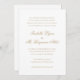 Convites clássicos de casamento, com design simples nomes de noiva e noivo, em caligrafia elegante, e textos tradicionais, em tom dourado sobre branco. O modelo tem campos para dois hospedeiros serem listados, fazer ideal se os pais da noiva não forem mais casados e ambos acolherem o casamento. Este design clássico é perfeito para um casamento formal.