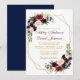 Convite Casamento Dourado Geométrico Azul Borgonha Floral