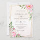 Um elegante convite de casamento floral com flores cor d'água cor-de-rosa com caligrafia manual moderna.
