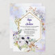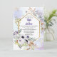 Crie o seu convite perfeito para o casamento com este convite floral roxo, de formato geométrico dourado.