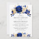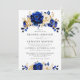 Elegante tema ouro azul real Convite para casamento com elegante buquê de azul real, Marinho, ouro, flores amarelas do rosa e folhas de eucalipto. Entre em contato comigo para obter ajuda sobre a personalização ou se você precisar de outro produto com este design.