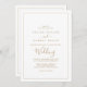 Este cartão de convite de casamento de ouro minimalista é perfeito para um casamento simples. A design romântica moderna apresenta ouro clássico e tipografia branca emparelhada com uma caligrafia rústica, mas elegante, com estilo voltado para a mão. Personalizável em qualquer cor. Mantenha o design simples e elegante, como está, ou personalize-o adicionando seus próprios gráficos e trabalhos de arte.