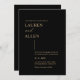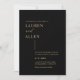 Convide amigos e família para a cerimônia de seu casamento com este convite moderno, apresentando um fundo negro sólido com texto dourado para adicionar um toque de elegância às suas cartas de casamento.