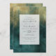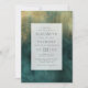 Um elegante design de abstrato de aquarela em tons de talo profundo e ouro fornece o fundo para o texto da cinza de carvão em uma tela retangular branca. O design de aquarela é repetido na parte traseira da placa.