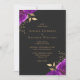 Convite Casamento Dourado Roxo Romântico Escuro Floral