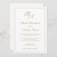 O estilo tradicional é um convite de casamento de ouro falso com um design simples e clássico com seu monograma inicial e seus nomes em um dentro de caligrafia elegante de uma fronteira fina. Todos os elementos de design podem ser alterados na ferramenta de edição de design. Estes convites de casamento elegantes são perfeitos para um casamento formal.