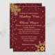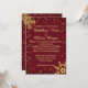 Um estilo moderno com os pontos do bokeh, estrelas do ouro e flocos de neve e watermarks coloridos do redemoinho. A cor do fundo é um vermelho festivo do arando. Personalize este convite para seu casamento do feriado do Natal. A parte traseira tem o espaço se você precisa de fornecer mais informação. Podem igualmente ser personalizados para outras ocasiões do casamento tais como um chá de panela, um noivado ou uma festa de solteira ou um jantar de ensaio.