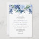 Um belo convite de casamento com uma borda floral de cor d'água em tons de azul. Os nomes da noiva e do noivo aparecem em fontes azuis empoeiradas. O reverso é uma sombra de azul empoeirado.