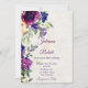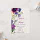 Personalize este convite de casamento com flores em aquarela rosa e roxa com seus detalhes