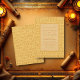 Celebre sua história de amor com elegância antiga através deste convite de casamento egípcio, inspirado pela rica história do Egito Antigo. Projetado em um fundo no estilo papiro com sotaques de ouro luxuosos e motivos hieróglifos, este convite traz um senso de realeza e romance para o dia do seu casamento.