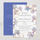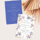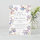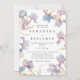 Este convite de casamento elegante é perfeito para casamentos de primavera e verão. O design apresenta um anel de íris em aquarela em tons de lilás e azul pervinca. Toques sutis de dourado adicionam um elemento cintilante e mágico. Os detalhes estão incluídos no verso do convite em vez de num cartão separado. (Uma versão sem detalhes adicionais também está disponível como parte desta coleção.)