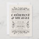 Personalize este elegante convite de casamento para preto e creme, com tipografia vintage, com ilustrações botânicas e florais sobre um fundo de marfim cremoso: Personalize facilmente a redação do estilo do retro jornal para o seu casamento, e sinta-se à vontade para mover os componentes do design, clicando no botão "Editar usando a ferramenta design" na janela "Personalizar". Consulte a coleção de correspondência de cheios abaixo!