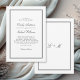 Simples, elegante e saboroso, este clássico design de convite de casamento apresenta uma dupla linha de fronteira moldando seu texto. A tipografia tradicional clássica é usada para os nomes da noiva e do noivo e a recepção emparelhada com a fonte do serif eterno para o texto do casamento. Você pode adicionar, remover ou ajustar o posicionamento do texto de acordo com as suas necessidades. O popular fundo branco soma-se à simplicidade limpa deste design. O verso do convite tem uma modelo de texto para incluir a inicial do monograma da noiva e do noivo. Esses convites estão disponíveis em formatos de download digitais impressos e sem papel.