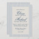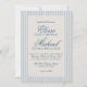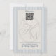 Convide formalmente os convidados para o seu grande dia com este convite de casamento elegante com faixa azul e letra de dinheiro antigo! Este design apresenta fonte manuscrita e faixas azuis atemporais. Personalize seus detalhes e o monograma personalizado no verso no Zazzle! Tem um pedido personalizado? Me envie uma mensagem!