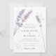 Lavanda de aquarela com filtro de aquarela e fundo de aquarela no verso. Convite para casamento floral elegante.
