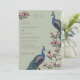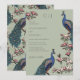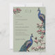 Este Convite de Casamento com Pavão Floral em Verde Sage apresenta pavões azuis e verdes desenhados à mão empoleirados em ramos de Magnólia em flor a tinta preta. Personalize com os detalhes do seu casamento clicando em "Personalizar este modelo" na página do produto. Todo o texto é editável.
