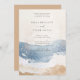 Coloque a palco para sua celebração romântica com este elegante convite para casamento na praia. Apresentando ondas serenas de aquarela em marinho, azul e branco que suavemente transitam em tons suaves, esta design incorpora perfeitamente um tema de casamento inspirado no oceano. Ideal para casamentos costeiros, comemorações à beira-mar, ou casamentos de destino, esta onda e convite para o casamento de areia trazem a beleza da praia aos seus convidados. A mistura harmoniosa de elegância e tons naturais inspirados no mar faz dela uma escolha eterno para casais que sonham com um casamento náutico romântico ou uma estética tranquila à beira-mar.