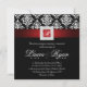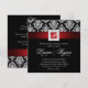 Convite Casamento Elegante Damask Jóias Preto Vermelho Bra